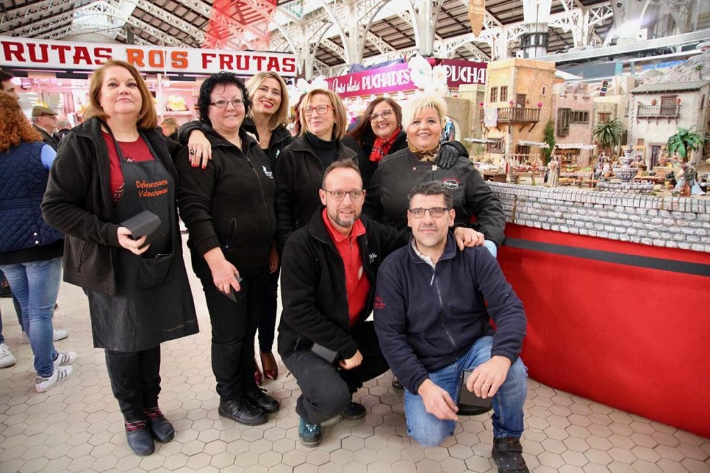 El Belén del Mercado Central de Valencia ha sido realizado por los vendedores Salva Ros, Amparo Más, Chelo Bau, Cristina Anchel, Teresa Folgado, Encarna Folgado, Teresa Beltrán, Virginia Hernández y Vicente Fernández, convertidos, en estas fechas, también en belenistas.