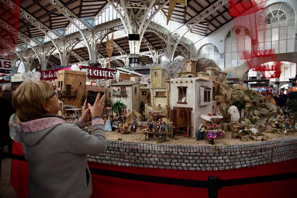 Los clientes del Mercado Central ya pueden disfrutar, desde hoy, de su nuevo Belén artesano, elaborado por sus propios vendedores, del que destaca el gran mercado al aire libre distribuido por las calles hebreas. Los belenistas del Mercado Central, acompañados por la presidenta de la Asociación de Vendedores del Mercado Central, Merche Puchades, han descubierto a las 11:30 h de hoy, martes, 10 de diciembre, el trabajo realizado durante los últimos meses, por este equipo de vendedores, coordinado por Salva Ros.
