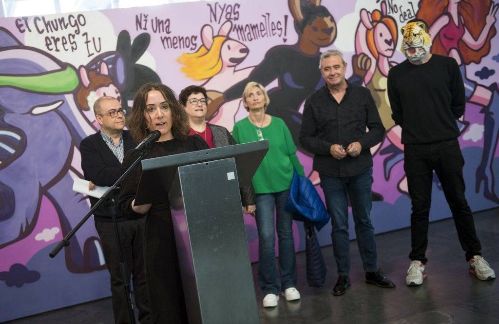 El acto de presentación de las muestras ha contado con la participación de Glòria Tello, diputada del MuVIM; Rafael Company, director del museo; Amador Griñó, jefe de exposiciones; Alfia Leiva, autora de la instalación Mitopoemas femeninos; Vinz Feel Free, comisario de la muestra Your Bunny is a battleground y Julia Galán, autora del Vitrall Un grito a voces.