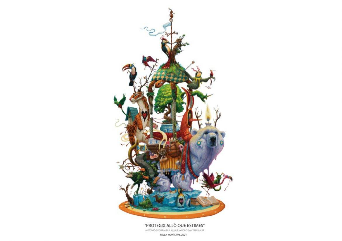 “La salut del planeta està en un moment molt delicat i som nosaltres els que ens hem d’adonar que hem de fer alguna cosa i amb esta obra posem a València en el centre del missatge amb una falla que fa un recorregut per diversos ecosistemes del planeta amb moltes espècies animals”, ressalten els artistes.