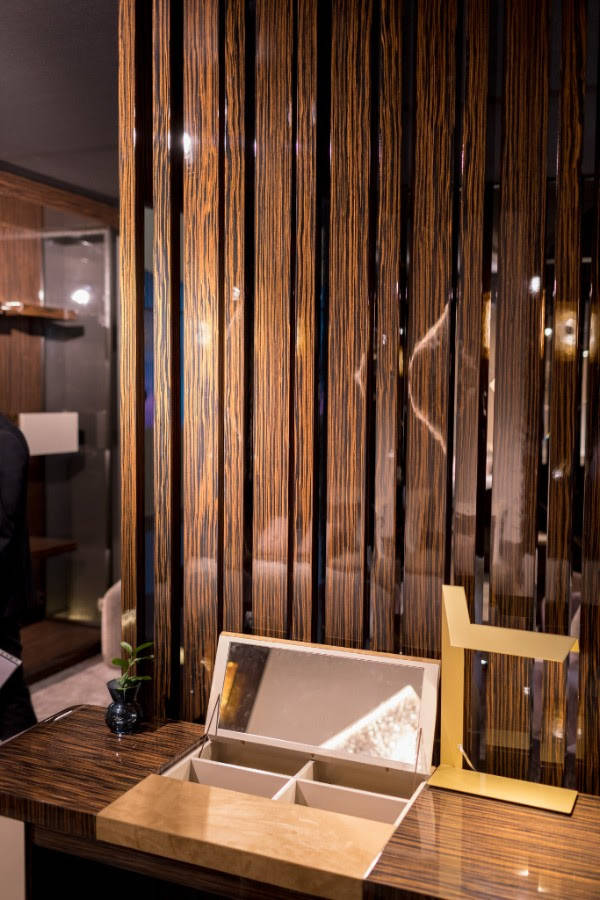 Guar­do un gra­to recuer­do de los años que viví en Valen­cia, de la luz y del mar. Valen­cia es cul­tu­ra, arte­sa­nía y eba­nis­te­ría. Y, a tra­vés de sus mue­bles y de sus déca­das de expe­rien­cia, Mon­ra­bal Chi­ri­ve­lla es capaz de crear pie­zas con­tem­po­rá­neas pre­ser­van­do esos prin­ci­pios arte­sa­nos tan liga­dos a la cuna del mue­ble valen­ciano. Con esta habi­ta­ción, aspi­ro a crear una expe­rien­cia sen­so­rial, que trans­mi­ta la esen­cia de Valen­cia a tra­vés de los olo­res, la vis­ta y el tac­to. Poner un cabe­ce­ro, un papel pin­ta­do y dos mesi­tas es fácil, pero yo quie­ro trans­mi­tir sen­sa­cio­nes a par­tir de los mate­ria­les, las tex­tu­ras, los colo­res y tam­bién el per­fu­me y la músi­ca ambien­tal”, expli­ca la dise­ña­do­ra de inte­rio­res, que vivió en la capi­tal del Turia jun­to a su mari­do, el ex juga­dor del Valen­cia C.F. y del Levan­te U. D., Pedraj Mija­to­vic.