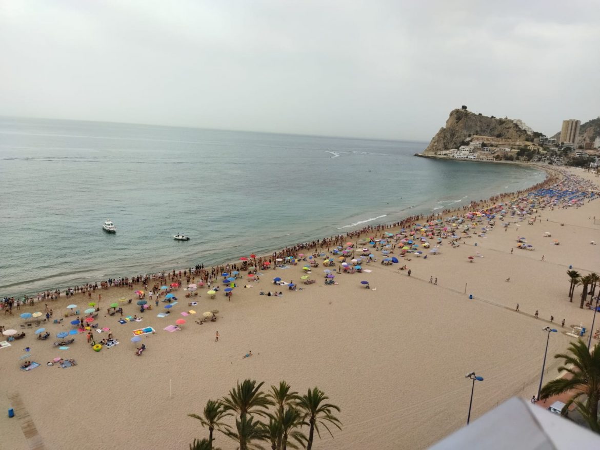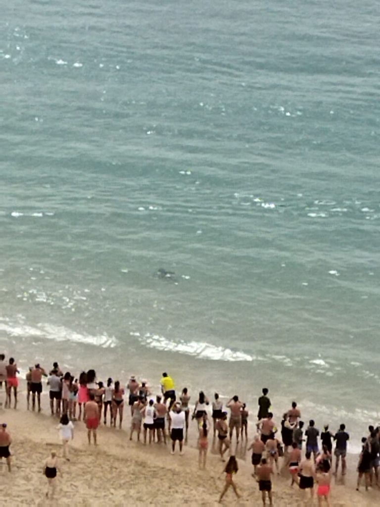 La expectación por ver el tiburón lo más cerca posible hacía que los bañistas dejaran de respestar la distancia de seguridad ante la Covid-19, por lo que la policía trataba también de mantener la seguridad a pie de playa.