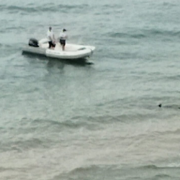 La expectación por ver el tiburón lo más cerca posible hacía que los bañistas dejaran de respestar la distancia de seguridad ante la Covid-19, por lo que la policía trataba también de mantener la seguridad a pie de playa.