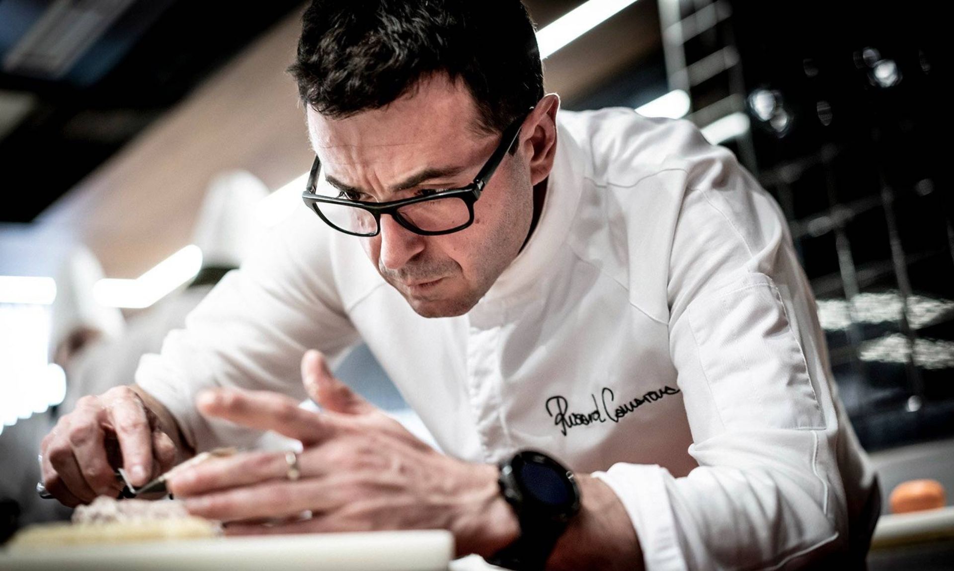 La alta cocina no sirve única y estrictamente para comer, es también y sobre todo un territorio experimental, un laboratorio. Para comer bien me quedo en casa, solía decir el crítico Rafa García Santos, “lo que quiero cuando voy a un restaurante es que me sorprendan”. Ese es el espíritu que ha anidado siempre en un joven (de espíritu) cocinero aunque ya cincuentón, de un pequeño pueblo de apenas mil y pico almas cercano a Gandía, entre medias montañas desde las que a lo lejos se divisa el inevitable Mediterráneo. Ricard Camarena (Barx, 1974) es un buen comunicador, natural, chisposo, didáctico. Habla, además, un valenciano fluido, de la calle, nada impostado. Y no hace causa de ello. Tal vez esa fue la razón por la que le ficharon para conducir un programa sobre cocina en À Punt. Es el mejor espacio de su parrilla.
