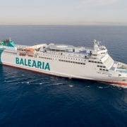 El buque cubre desde esta noche la línea València-Ibiza-Palma y a finales de mes se incorporará a la ruta Huelva-Canarias, donde actualmente ya navega el otro ferry remotorizado a gas de la compañía, el Nápoles.