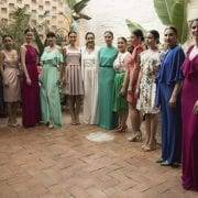 Para las oca­sio­nes espe­cia­les apues­ta por gasas y lisos con volú­me­nes en volan­tes y ves­ti­dos de satén des­es­truc­tu­ra­dos que con­tras­tan con otras pren­das más livia­nas, de patro­nes suti­les y silue­tas feme­ni­nas, ins­pi­ran­do un esti­lo que se apo­ya en la pure­za del blan­co y en la rique­za de los estam­pa­dos, que se plas­man sobre cre­pes, gasas y sate­nes. Una esté­ti­ca román­ti­ca basa­da en la déca­da dora­da de la cos­ta azul que Bár­ba­ra Torri­jos pre­sen­tó ante ami­gos y clien­tes.