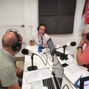 Gerard Sán­chez y Miguel Ygue­ra­vi­de duran­te la entre­vis­ta a Bego­ña Rodri­go.