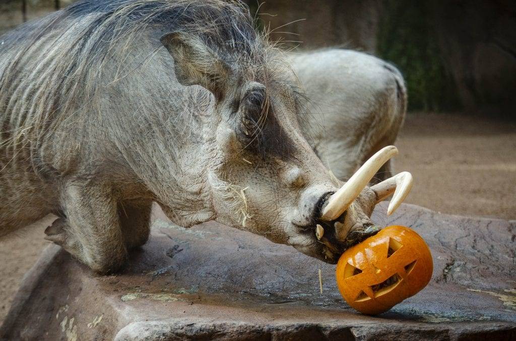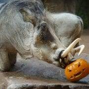 Los pequeños carnívoros como suricatas y mangostas rayadas extraían la carne picada mientras tomaban los escurridizos gusanos que salían de los ojos y boca decorados en las calabazas; para los grandes depredadores como leones y hienas el olor de la sangrienta carne roja resultaba un gran estímulo para encontrar rápidamente su manjar; los primates como lémures, gorilas o drilescogían con destreza sus “golosinas” en forma de muesli y frutas; los facóqueros, “famosos” por ser Pumba en El Rey León, rebuscaban la fruta, maíz y pienso; por último, los “gigantes” de Bioparc como hipopótamos, sorprendían engullendo de un solo bocado las grandes calabazas y los elefantes se divertían “destrozando” con sus trompas las enormes guirnaldas que colgaban de los baobabs mientras degustaban su comida favorita.