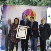 El President de la Generalitat, Ximo Puig, junto a los responsables de la bodega premiada.