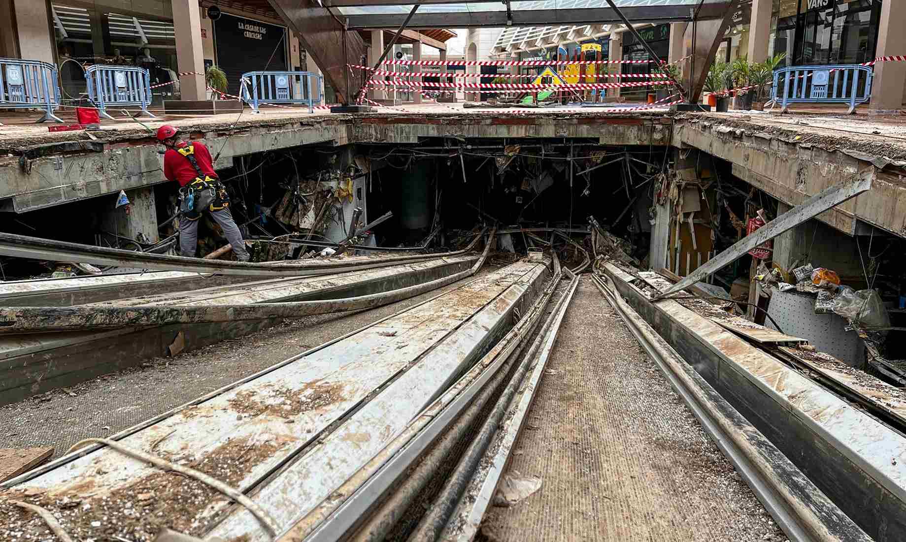 El cen­tro comer­cial de Bonai­re, en Aldaia (Valen­cia), epi­cen­tro de algu­nas de las imá­ge­nes más impac­tan­tes de las inun­da­cio­nes pro­vo­ca­das por la dana. EFE/Roberto Ruiz