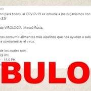 Una cadena de WhatsApp atribuida al “centro de virología de Moscú, Rusia” asegura que “el COVID-19 es inmune a los organismos con un pH mayor de 5.5” y que por tanto hay que consumir alimentos alcalinos que nos ayuden a combatir el pH para contrarrestar el virus. En la cadena se dan algunos ejemplos como el limón, el aguacate, la piña o el mango. Es un bulo. Os lo explica la web especializada en fakes news Maldito Bulo: