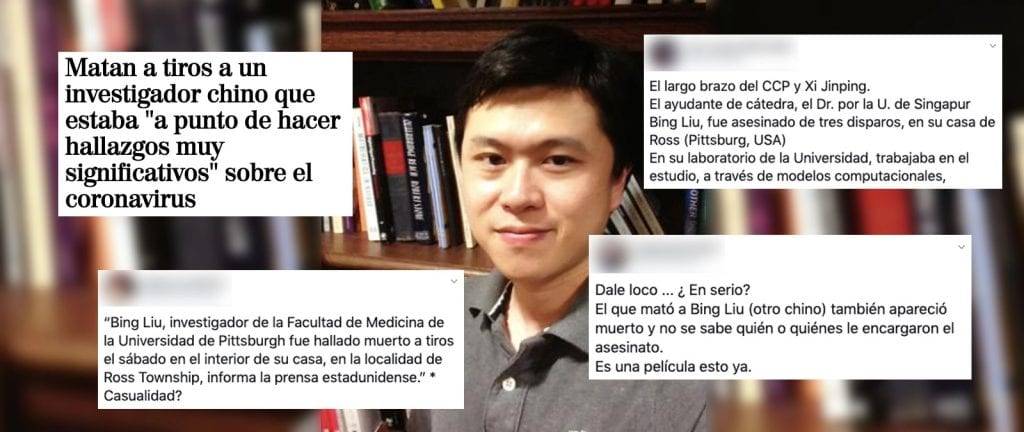 Está circulando una teoría de la conspiración que relaciona la muerte del científico Bing Liu con unos “hallazgos muy significativos” sobre el coronavirus que supuestamente estaba a punto de hacer en la Universidad de Pittsburgh. Sin embargo, la policía de Ross Township (Pittsburgh), donde ha ocurrido el suceso, asegura que se debe a una “larga disputa relacionada con una pareja íntima” y no al trabajo del científico.