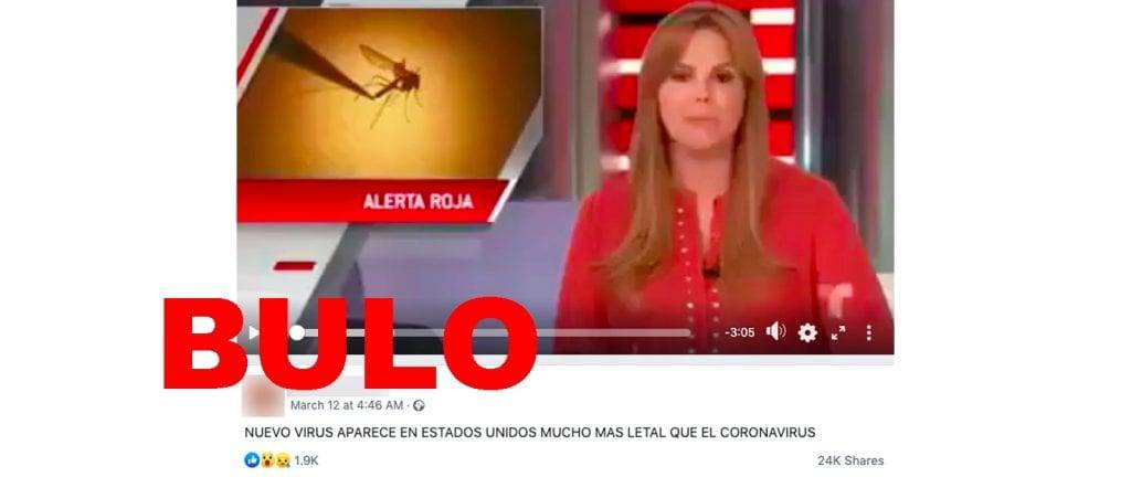 Se ha vira­li­za­do en redes un vídeo en el que una pre­sen­ta­do­ra aler­ta de un supues­to “nue­vo virus” lla­ma­do EEE que habría pues­to en aler­ta a varios esta­dos de los Esta­dos Uni­dos como Michi­gan o Mas­sa­chu­setts. Ese vídeo se está difun­dien­do aho­ra ase­gu­ran­do que es “mucho más letal que el coro­na­vi­rus”, pero la reali­dad es que el virus que cau­sa la ence­fa­li­tis equi­na del este (EEE) ya fue ais­la­do en 1933, según la Orga­ni­za­ción Pan­ame­ri­ca­na de la Salud. Por lo tan­to, no se pue­de con­si­de­rar “nue­vo”.