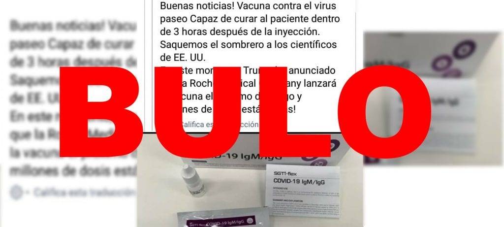 El producto que aparece en la foto de la cadena, ‘COVID-19 IgM/IgC’ no es una vacuna, ni está desarrollado por Roche Medical Company. Se trata de un test que detecta si el cuerpo está produciendo anticuerpos para luchar contra el coronavirus desarrollado por Sugentech, como explican en su web. En la propia descripción del producto explican que “como no hay medicinas ni vacunas, la mejor manera de combatir esta infección es el aislamiento. Mucha gente no tiene síntomas. Por eso, el diagnóstico rápido es muy importante. El SGTi-flex COVID-19 IgM/IgG permite ayudar a la comunidad a identificar la infección y aislar a las personas sin síntomas pero con sospecha de COVID-19”.