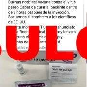 El producto que aparece en la foto de la cadena, ‘COVID-19 IgM/IgC’ no es una vacuna, ni está desarrollado por Roche Medical Company. Se trata de un test que detecta si el cuerpo está produciendo anticuerpos para luchar contra el coronavirus desarrollado por Sugentech, como explican en su web. En la propia descripción del producto explican que “como no hay medicinas ni vacunas, la mejor manera de combatir esta infección es el aislamiento. Mucha gente no tiene síntomas. Por eso, el diagnóstico rápido es muy importante. El SGTi-flex COVID-19 IgM/IgG permite ayudar a la comunidad a identificar la infección y aislar a las personas sin síntomas pero con sospecha de COVID-19”.