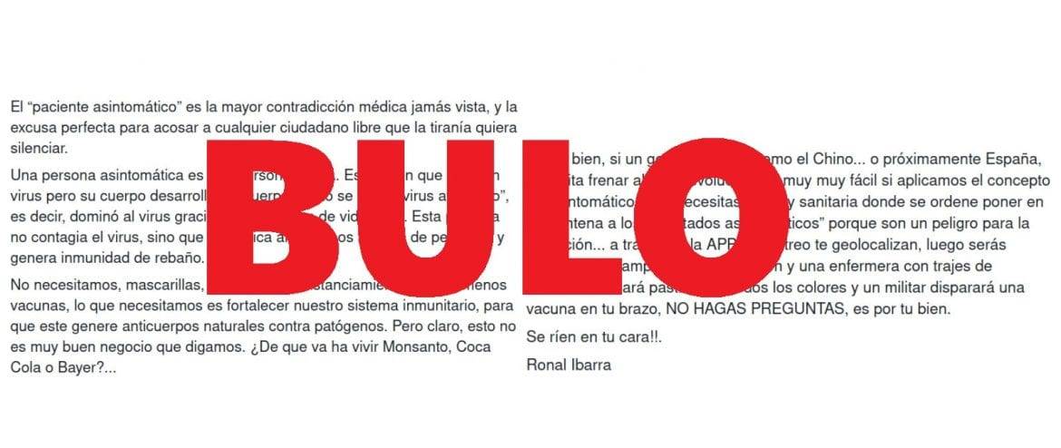 Se ha viralizado una cadena que afirma, entre otras cosas, que “Una persona asintomática es una persona SANA. Es alguien que tiene un virus pero su cuerpo desarrolló anticuerpos, esto se llama “virus atenuado”, es decir, dominó al virus gracias a sus hábitos de vida sana. Esta persona no contagia el virus, sino que comunica anticuerpos al resto de personas y genera inmunidad de rebaño”. Es falso que las personas asintomáticas no contagien el coronavirus y que comuniquen anticuerpos.
