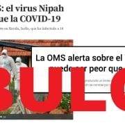 Nos estáis pre­gun­tan­do mucho por una supues­ta aler­ta emi­ti­da por la OMS a cau­sa de un bro­te infec­cio­so en India a cau­sa de un virus lla­ma­do Nipah que sería “más mor­tal que la COVID” según han publi­ca­do algu­nos medios espa­ño­les. Es un bulo: se mue­ve como actual una infor­ma­ción que ocu­rrió en 2018.