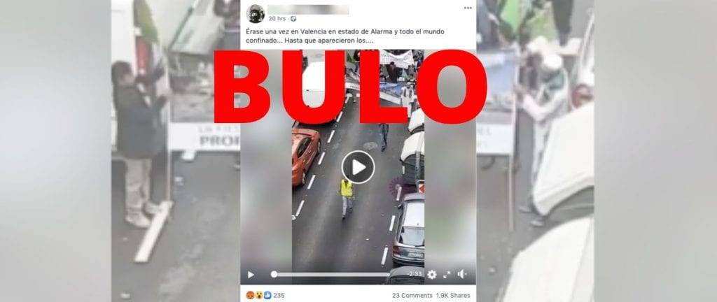 Está cir­cu­lan­do un vídeo por redes socia­les con el men­sa­je “Éra­se una vez en Valen­cia en esta­do de Alar­ma y todo el mun­do con­fi­na­do… Has­ta que apa­re­cie­ron los…”. En el vídeo se ve a un gru­po nume­ro­so de gen­te con una pan­car­ta que pone “pro­fe­ta Muham­mad”. Es un bulo: el vídeo no es actual, sino de 2018.
