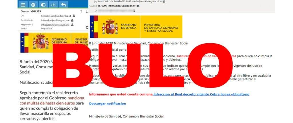 Nos habéis preguntado por un correo electrónico, supuestamente del “Ministerio de Sanidad, Consumo y Bienestar Social”, en el que te notifican que has cometido una infracción por no llevar el “cubrebocas” (mascarilla) obligatorio en esta crisis sanitaria del coronavirus y que han sido tus vecinos quienes te han denunciado por ello. Es un bulo. Es un correo malicioso, según la Oficina de Seguridad del Internauta (OSI) y el Ministerio de Sanidad nos ha confirmado que no es una comunicación suya y que no tiene capacidad para sancionar.