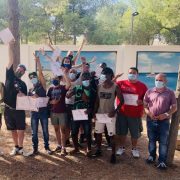 El cen­tro de meno­res Mare de Déu dels Des­em­pa­rats i dels Inno­cents de Torrent (Valèn­cia) ha sido esce­na­rio de una jor­na­da soli­da­ria en la que el arte ha sido el prin­ci­pal pro­ta­go­nis­ta. Nue­ve per­so­nas de entre 19 y 46 años con inquie­tu­des artís­ti­cas, pro­ce­den­tes de colec­ti­vos en ries­go de exclu­sión social e inte­gran­tes de pro­gra­mas de Cári­tas Valen­cia y Pro­yec­to Hom­bre Valen­cia, han par­ti­ci­pa­do en un taller de pin­tu­ra mural orien­ta­do a la inser­ción labo­ral de sus alum­nos. Se tra­ta de una for­ma­ción soli­da­ria con un com­pro­mi­so real de futu­ro, uti­li­zan­do el arte como motor para avan­zar.