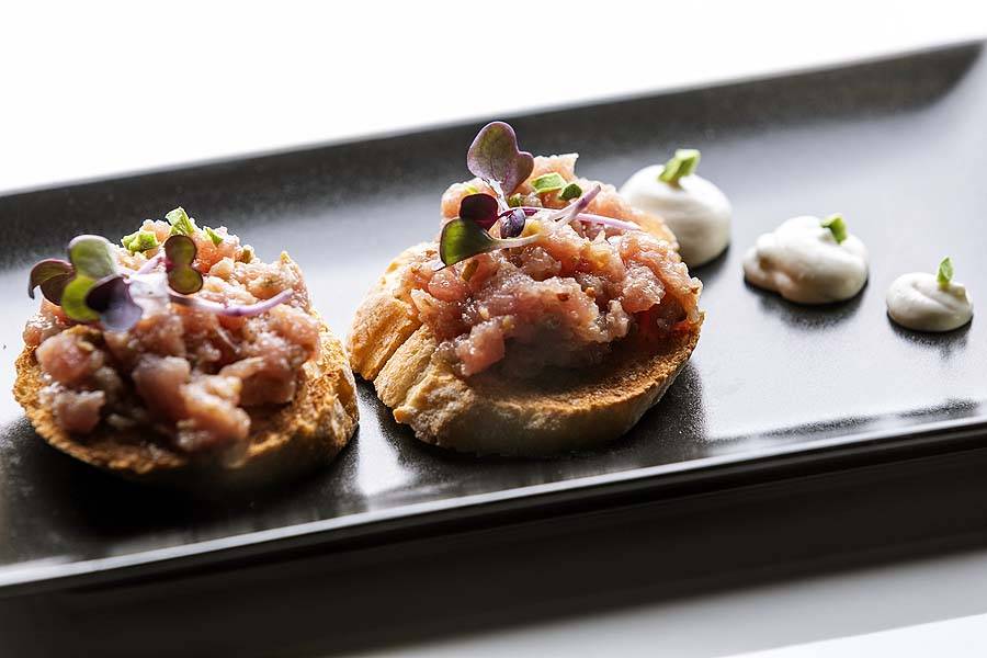 Tosta de tartar de atún con aliño de cítricos y mayonesa suave de jalapeños