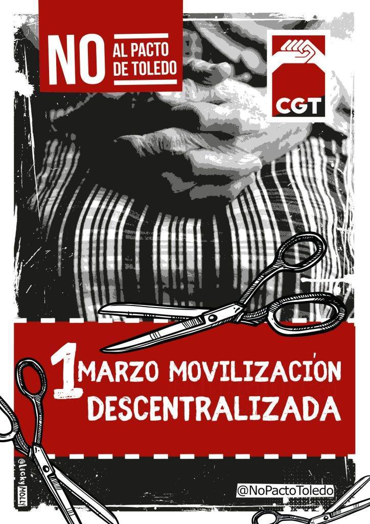 Además desde la organización anarcosindicalista reclaman la derogación de las leyes de reforma de pensiones de 2011 y 2013 “donde se vuelva a la edad de jubilación ordinaria a los 65 años y la anticipada a los 60 sin penalizaciones cuando las carreras profesionales sean de 30 años o más, a la vez que de manera progresiva se jubilen las personas a los 60 años como vía de reparto del trabajo y el empleo y el periodo de cálculo de la pensión sea de 15 años”.