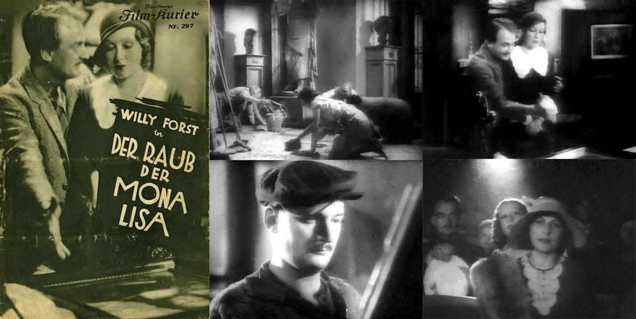 Veinte años después de que tuviera lugar el famoso robo del cuadro de Leonardo da Vinci, se estrenaba Der Raub der Mona Lisa (El robo de la Mona Lisa, 1931) dirigida por Géza von Bolváry. Picasso y Apollinaire fueron sospechosos del hurto en su día, y se dispararon las visitas al Louvre por los curiosos que acudían a contemplar el hueco. El guionista Walter Reisch, futuro autor de comedias como Ninotchka, añade una trama de intriga amorosa a la película y propone una reflexión sobre el arte representación y la realidad.