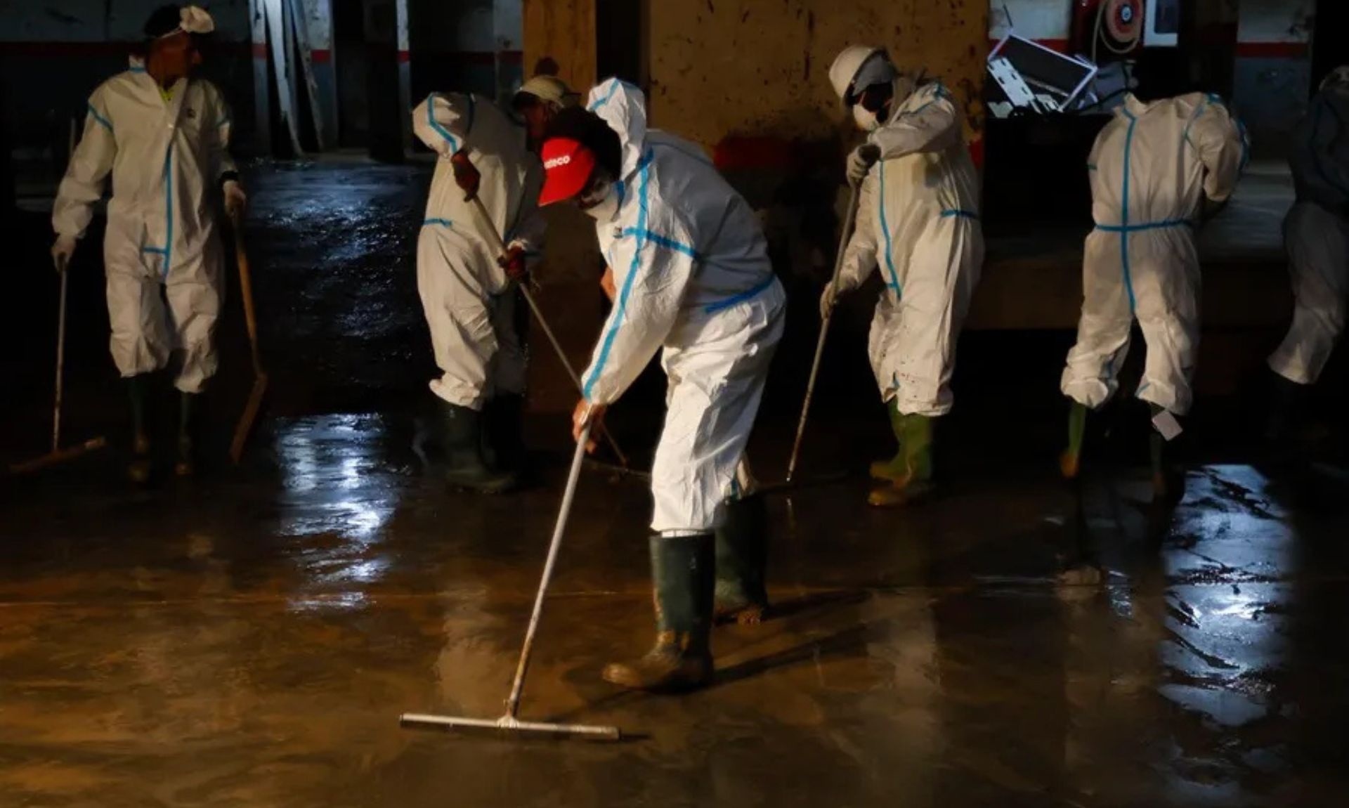 Una vein­te­na de téc­ni­cos de la empre­sa FFC han comen­za­do este mar­tes a lim­piar un gara­je de dos plan­tas de un blo­que de pisos situa­do en la ave­ni­da l’Horta, don­de, casi un mes des­pués de la catás­tro­fe, la plan­ta más baja con­ti­núa con una capa de lodo de apro­xi­ma­da­men­te medio metro.
