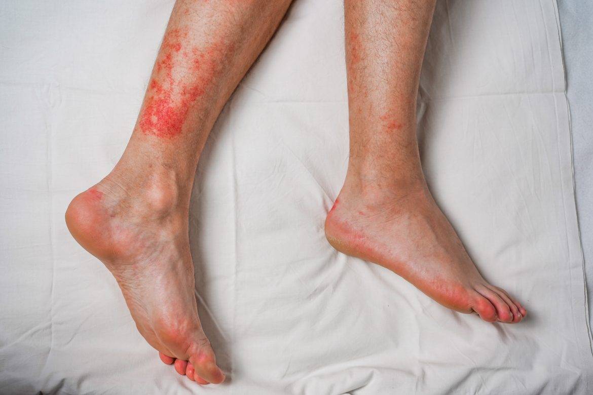 Ima­gen de una reac­ción alér­gi­ca a una pica­du­ra.
