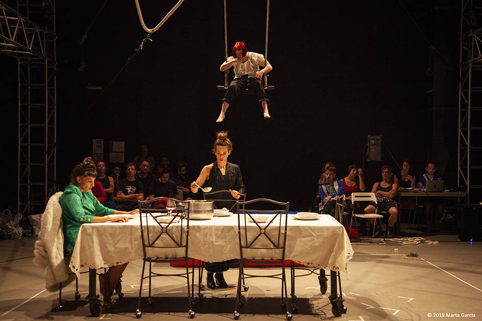 El circ social és tam­bé la base de El desig d’es­tar junts, la peça que els valen­cians La Fines­tra Nou Circ repre­sen­ta­ran a La Mutant el 26 de novem­bre a par­tir de les 20:30 hores. Es trac­ta d’u­na obra mul­ti­dis­ci­pli­nà­ria on els mala­bars i les acro­bà­cies cir­cen­ses con­viuen amb la músi­ca en direc­te, el tea­tre i la dan­sa, con­for­mant un espec­ta­cle sobre la força del tre­ball en equip on par­ti­ci­pa­ran cinc artis­tes pro­fes­sio­nals i dos joves amb diver­si­tat fun­cio­nal. Tam­bé a La Mutant, el dia 28 a les 19 hores, l’a­gru­pa­ció socio­cul­tu­ral bar­ce­lo­ni­na Ate­neu 9 Barris refle­xio­na­rà a Sopa (i el que el vent no s’em­por­tà) sobre els tabús que envol­ten les reunions fami­liars per Nadal, on temes com l’al­coho­lis­me, la mort o la infi­de­li­tat se silen­cien per apa­ren­tar una feli­ci­tat qua­si fic­tí­cia.