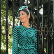 Vestido Evita (219€), diadema Nashay verde agua (109€) y zapatos Caroline (99€)