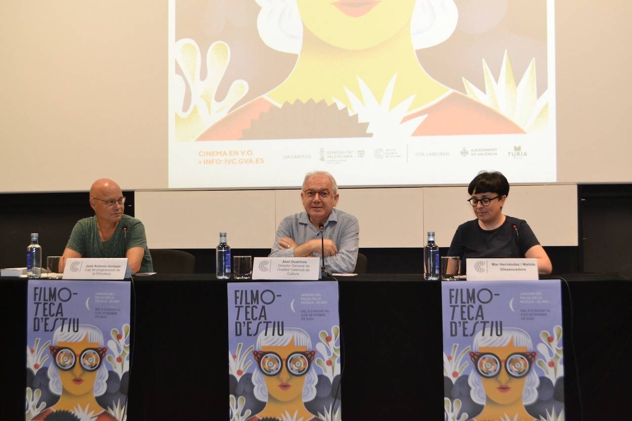 Gua­ri­nos ha esta­do acom­pa­ña­do por el jefe de pro­gra­ma­ción de la Fil­mo­te­ca, José Anto­nio Hur­ta­do, y por la dise­ña­do­ra valen­cia­na Mar Her­nán­dez, cono­ci­da pro­fe­sio­nal­men­te como Malo­ta, que es la auto­ra del car­tel de esta edi­ción.