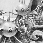 Un nuevo ámbito para la ilustración donde se representa un imaginario metafórico a través de una iconografía retrofuturista del protagonista de la actualidad mundial, la Covid-19. Distopía de lo insólito convertido en lo habitual. La conciencia de habitar un mundo diferente con la esperanza puesta en la creación artística.