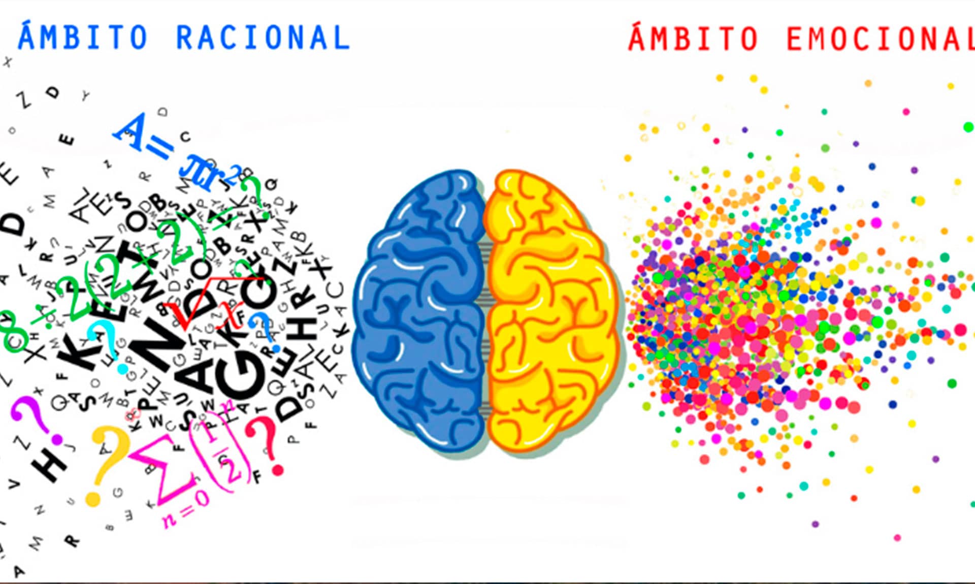 Los dos hemis­fe­rios cere­bra­les se aso­cian sim­bó­li­ca­men­te con los ámbi­tos racio­na­les y los emo­cio­na­les res­pec­ti­va­men­te de nues­tra men­te.
