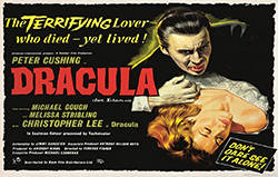 Se ha cumplido hoy el centenario del gran Christopher Lee (Londres, 27 de mayo de 1922 — 7 de junio de 2015). Grande por su altura ‑1,96- y grande porque fue el mejor monstruo de Frankenstein –un alma en pena que conmovía en las películas de la Hammer– y fue, creo que nadie lo discute, el mejor Drácula de la historia del cine (terrorífico, con un erotismo abismal). Drácula (Terence Fisher, 1958, Gran Bretaña) es el título mayor de su productora, de su protagonista y de su director.
