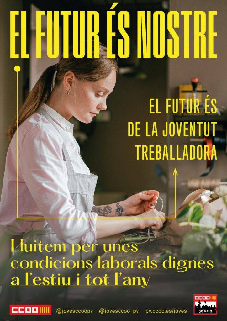 Joves CCOO PV cie­rra hoy, en el Día Inter­na­cio­nal de la Juven­tud, su cam­pa­ña El futu­ro es nues­tro. El futu­ro es de la juven­tud tra­ba­ja­do­ra’’, que el sin­di­ca­to ha pues­to al ser­vi­cio de las per­so­nas jóve­nes como herra­mien­ta infor­ma­ti­va y de denun­cia colec­ti­va, para luchar por unas con­di­cio­nes labo­ra­les dig­nas en verano y todo el año.