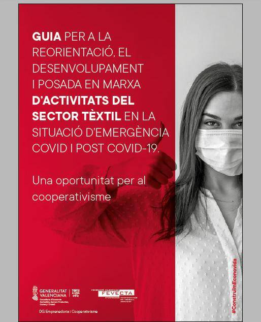 La Conselleria de Economía Sostenible, Sectores Productivos, Comercio y Trabajo y la Federación Valenciana de Empresas Cooperativas de Trabajo (Fevecta) publicarán una guía destinada a personal emprendedor y empresas y cooperativas del textil interesadas en fabricar mascarillas. La guía estará disponible en el Portal del Emprendedor: consultar aquí.