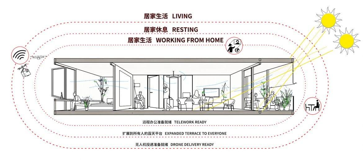Tal como mani­fies­ta el arqui­tec­to “desa­rro­lla­mos este pro­yec­to duran­te el con­fi­na­mien­to, cuan­do todo el equi­po tra­ba­ja­ba des­de sus casas y deci­di­mos incluir todos aque­llos aspec­tos que podrían hacer nues­tra vida mejor, de for­ma que se pudie­ra defi­nir un nue­vo están­dar a apli­car en Chi­na, en Espa­ña o en cual­quier pais del mun­do”. Por tan­to, son edi­fi­cios que se enfren­tan a la cri­sis por la vida y por el cli­ma al mis­mo tiem­po.
