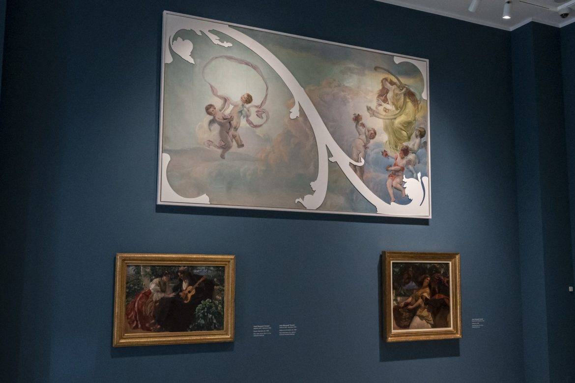 La expo­si­ción, a tra­vés de una dece­na de obras pro­ce­den­tes de la colec­ción de la Fun­da­ción Ban­ca­ja, Casa Museo Pina­zo (Gode­lla), Colec­ción Fami­lia Lla­dró y colec­cio­nes par­ti­cu­la­res, reve­la la pre­sen­cia de la pin­tu­ra deco­ra­ti­va por encar­go en Pina­zo, Soro­lla y Mon­grell, jun­to a otras obras de los artis­tas.