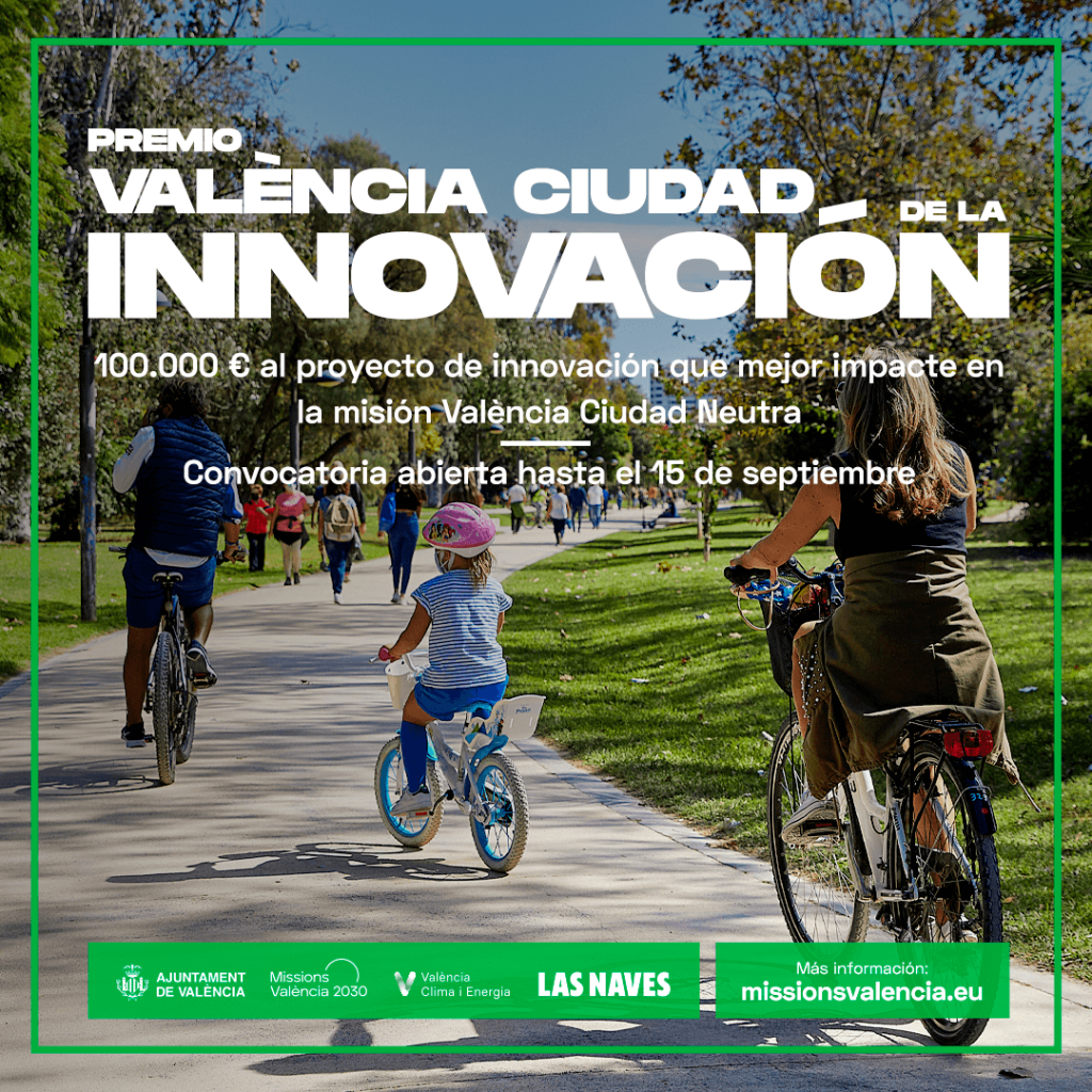 El Premio València Ciudad de la Innovación de 100.000€, cuya convocatoria se acaba de abrir, procede del reconocimiento que la Comisión Europea dio a la ciudad de Valencia en 2020 por ser una de las 6 mejores ciudades europeas innovadoras gracias a su estrategia Missions València 2030. Esos 100.000€ irán destinados al mejor proyecto de innovación que se presente en la ciudad de Valencia y que pueda evidenciar el mayor impacto en la misión climática.