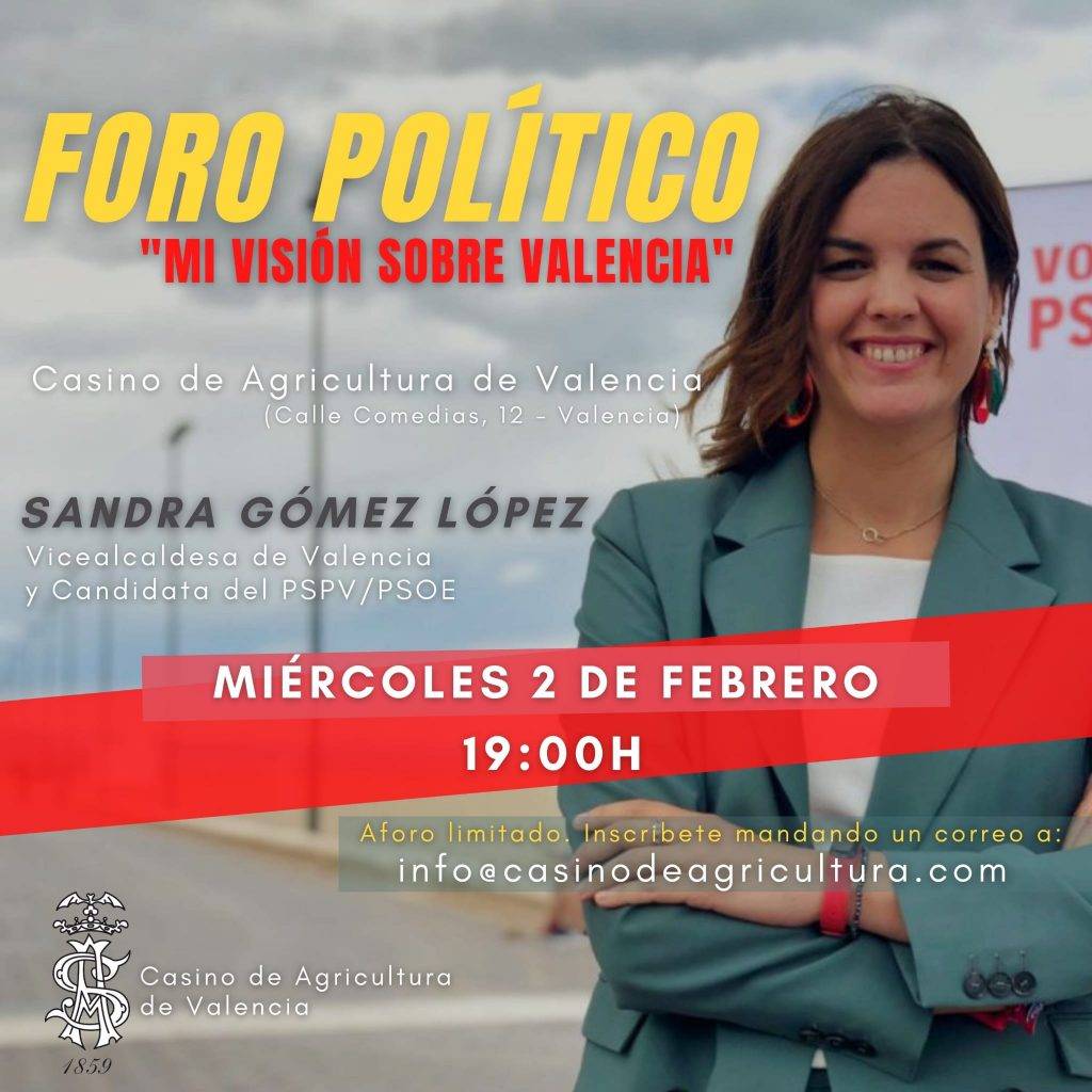 Sandra Gómez López es vicealcaldesa de Valencia y secretaria general del Partido Socialista del País Valencià, se licencia en Derecho y ADE por la Unversitat de Valencia y tras pasar por los despachos de Gómez-Acebo & Pombo y Garrigues, monta su propio despacho y finalmente pasa a la política activa.