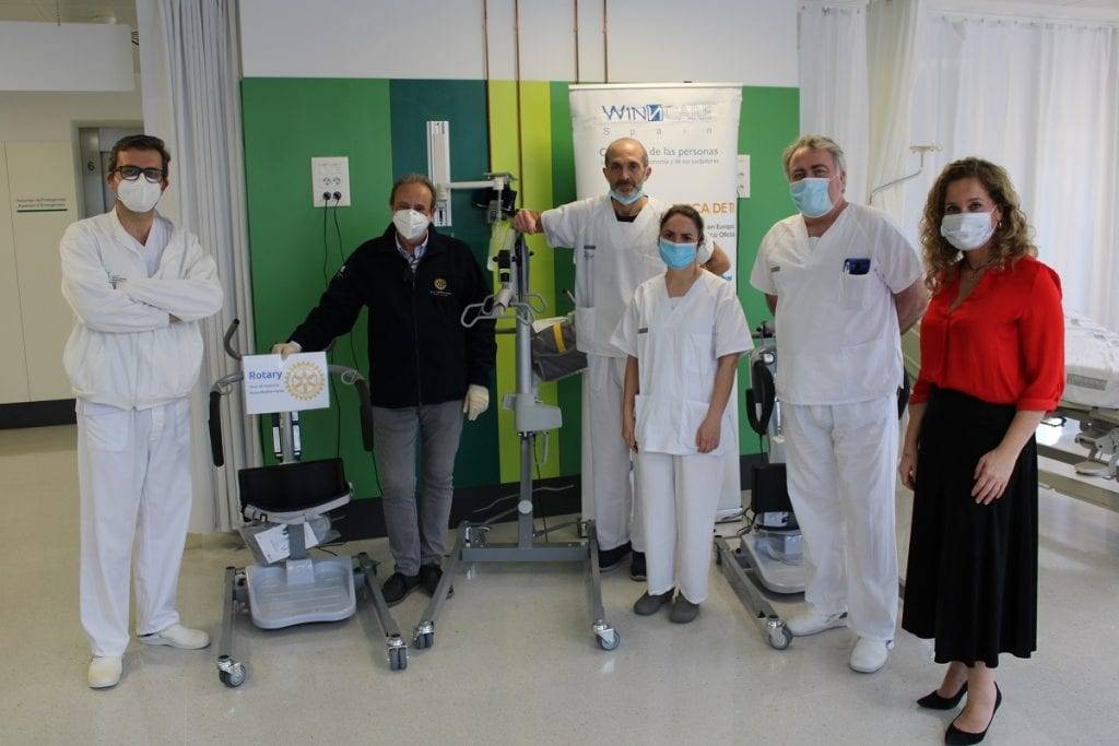 El Club Rotary Feria Mediterráneo de Valencia ha donado hoy al Hospital General de Valencia tres grúas elevadoras para pacientes que irán destinadas a las salas y UCIS COVID-19.
