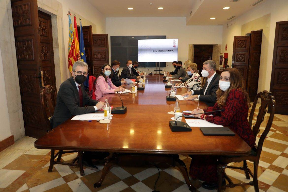 En la reu­nión de la comi­sión inter­de­par­ta­men­tal han par­ti­ci­pa­do la vice­pre­si­den­ta y con­se­lle­ra de Igual­dad y Polí­ti­cas Inclu­si­vas, Móni­ca Oltra; el vice­pre­si­den­te segun­do y con­se­ller de Vivien­da y Arqui­tec­tu­ra Bio­cli­má­ti­ca, Rubén Mar­tí­nez Dal­mau; la con­se­lle­ra de Jus­ti­cia, Inte­rior y Admi­nis­tra­ción Públi­ca, Gabrie­la Bra­vo; el con­se­ller de Edu­ca­ción, Cul­tu­ra y Depor­te, Vicent Mar­zà; la con­se­lle­ra de Sani­dad Uni­ver­sal y Salud Públi­ca, Ana Bar­ce­ló, y los con­se­llers de Eco­no­mía Sos­te­ni­ble, Sec­to­res Pro­duc­ti­vos, Comer­cio y Tra­ba­jo, Rafa Cli­ment, y de Polí­ti­ca Terri­to­rial, Obras Públi­cas y Movi­li­dad, Arca­di Espa­ña.