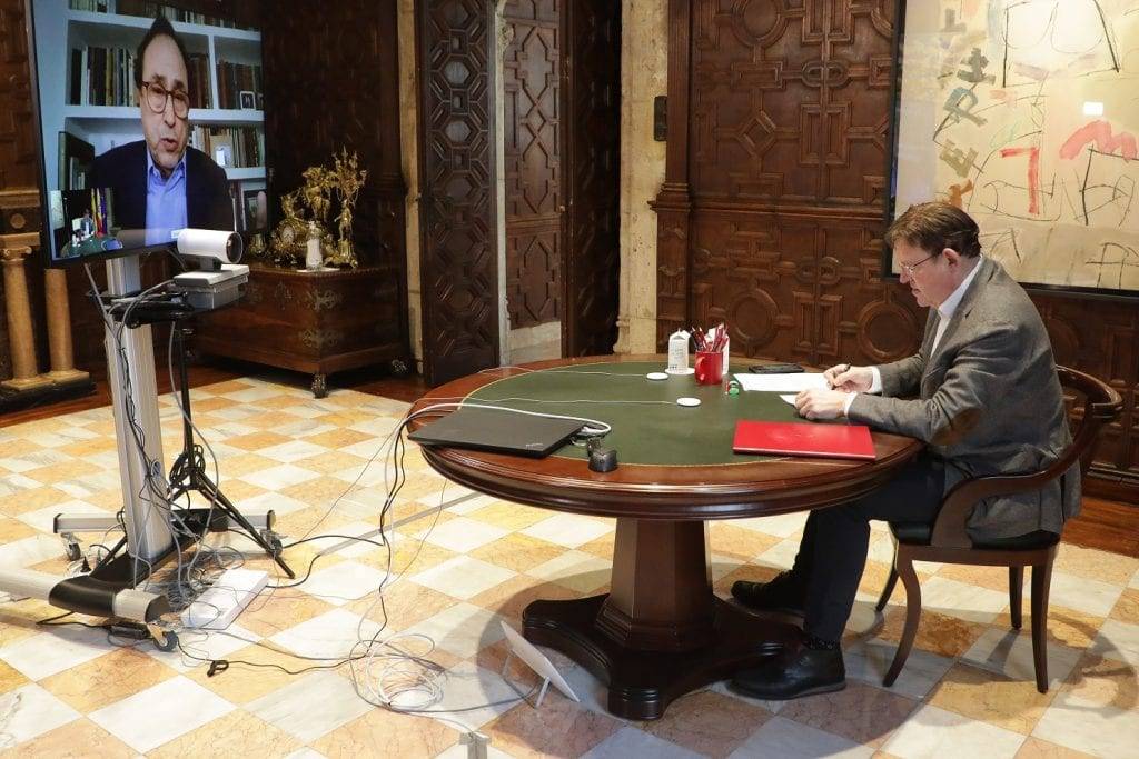 Puig ha mantenido una reunión de trabajo por videoconferencia con el conseller de Hacienda, Vicent Soler, para conocer con detalle la situación de la Tesorería de la Generalitat para hacer frente en estos momentos a la urgencia provocada por la expansión del SARS-CoV‑2, después del anuncio que hizo este domingo el presidente del Gobierno, Pedro Sánchez, de inyección de liquidez a las comunidades autónomas y el trabajo realizado en las últimas semanas con la Presidencia del Gobierno y también con los ministerios de Hacienda y de Economía.