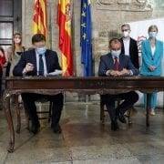 El president de la Generalitat, Ximo Puig, ha formalizado con el presidente de la Confederación Empresarial de la Comunitat Valenciana, Salvador Navarro, un convenio para poner en marcha el Plan Agiliza que, entre otros objetivos, pretende reducir un 30 por ciento los trámites administrativos de las empresas y ayudar así a reactivar la economía valenciana.