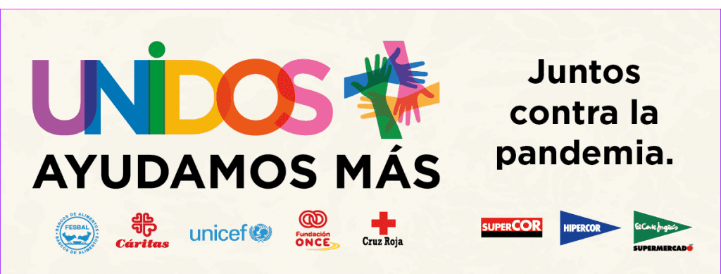El Corte Inglés ha puesto en marcha la iniciativa “Unidos Ayudamos Más” en colaboración con Cáritas, Cruz Roja, la Federación Española de Bancos de Alimentos (FESBAL), Fundación ONCE y UNICEF España a través de la venta de tarjetas solidarias por valor de 3 euros. Esta campaña nace con la finalidad de recaudar fondos que se destinarán a las diferentes acciones que llevan a cabo estas entidades para mitigar los efectos del Coronavirus y ayudar a las personas más afectadas por la situación.