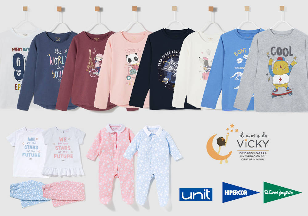La Fundación El Sueño de Vicky recauda fondos para la investigación contra el cáncer infantil. Además, tienen como objetivo dar a conocer la realidad y problemática de esta enfermedad y la importancia de la investigación para poder avanzar y dar con tratamientos específicos para ellos. La colaboración de la marca Unit de El Corte Inglés con esta Fundación comenzó hace varios años, por lo que regularmente organiza iniciativas solidarias de este tipo.