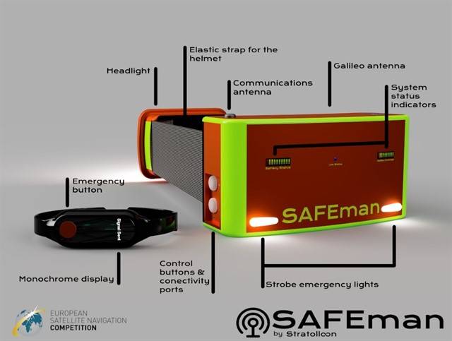 SAFEman es un sistema de ayuda para bomberos en incendios forestales que permite localizarlos en tiempo real de forma individual. Está formado por dos dispositivos: una pequeña pulsera, similar a las que se utilizan para hacer deporte, que se encarga de monitorizar al bombero, y un sistema integrado en el casco del profesional que incluye, entre otras cosas, unas luces de señalización para, en caso de poca visibilidad, poder localizarlo más rápidamente.