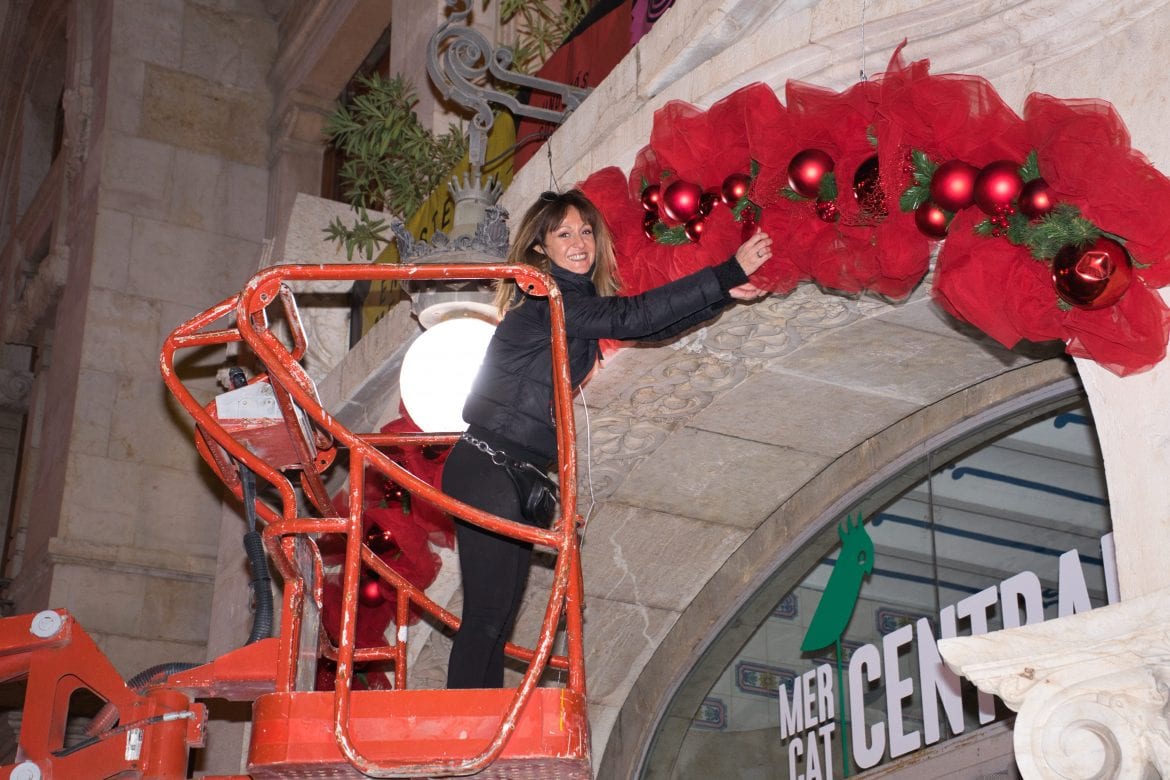 El Mercado Central vuelve a confiar en Cecilia Carusso para su decoración de Navidad, que se está ultimando esta semana y que este año se localiza en las puertas de entrada y en las fuentes interiores, invitando a sus clientes a comprar los productos para elaborar los menús más especiales en estas fechas.