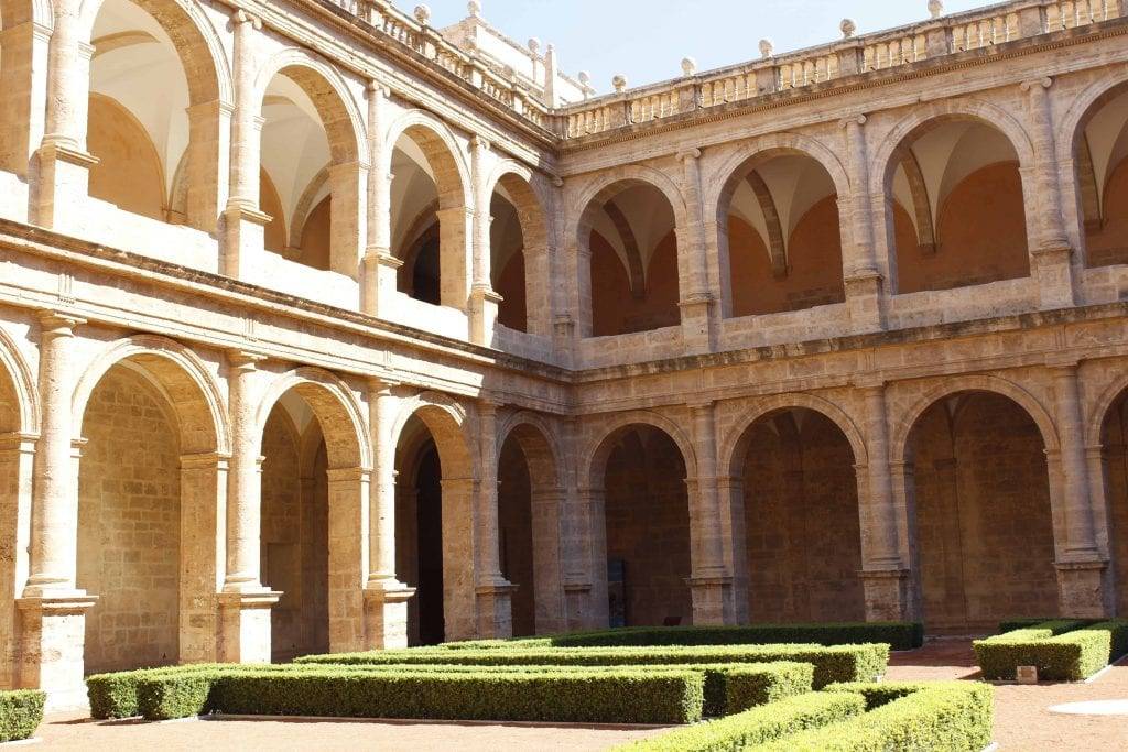 El recorrido por el monasterio comprende el claustro norte del monasterio, la iglesia desacralizada de san Miguel, la cripta donde descansan los restos mortales de la virreina Germana de Foix y el claustro sur, que es la zona más antigua que se conserva. El monasterio es de estilo renacentista y fue encargado por Germana de Foix y el duque de Calabria, Fernando de Aragón, en 1546. Monasterio de clérigos, residencia de nobles, cárcel, almacén de cosechas, colegio… han sido los usos que se le ha dado al edificio hasta que el año 2000 se convirtió en la sede de la Biblioteca Valenciana Nicolau Primitiu.